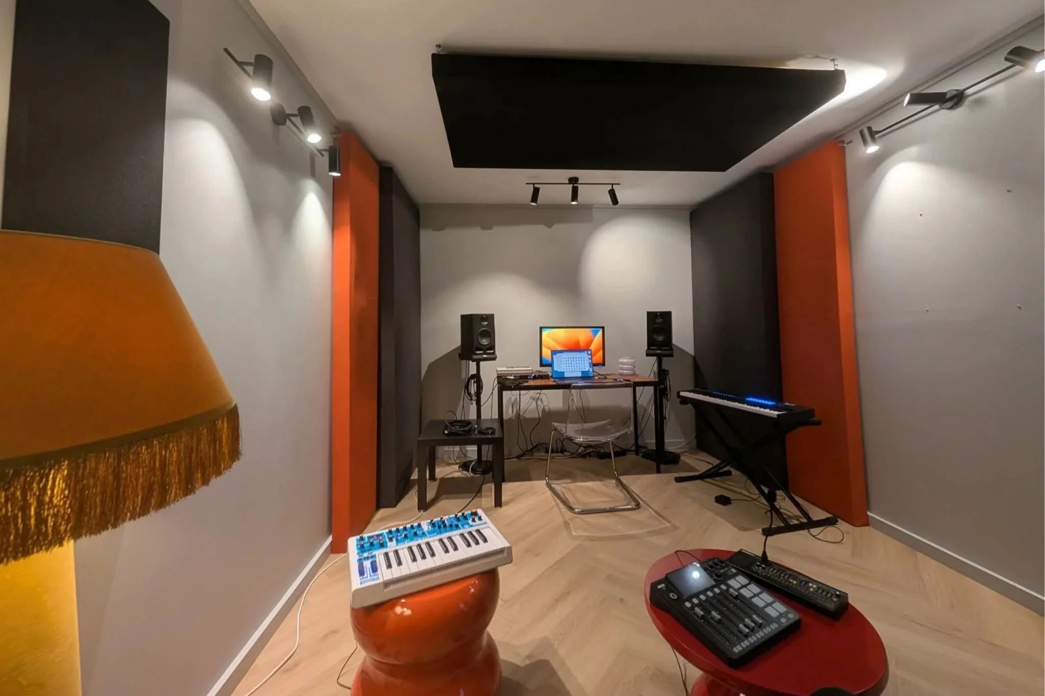 CONNECTED TO LIVE ROOM (HOTCAKE) - THIS STUDIO IS ANOTHER AMAZING ADDITION TO THE FACILITY, WITH SOME AMAZING EQUIPMENT FOR DRUM TRACKING AND GUITARS. THIS CONTROL ROOM IS PROFESSIONALLY TREATED AND GREAT SIZE FOR VOCAL SESSIONS AND MORE.